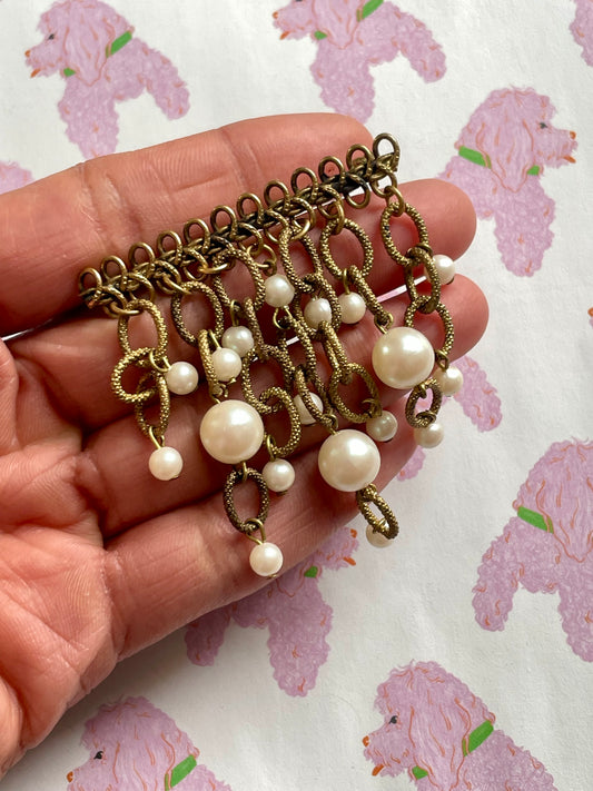 Vintage broche met hangende faux parels