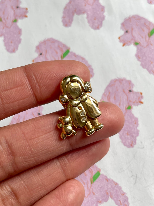 Vintage pin meisje met beer