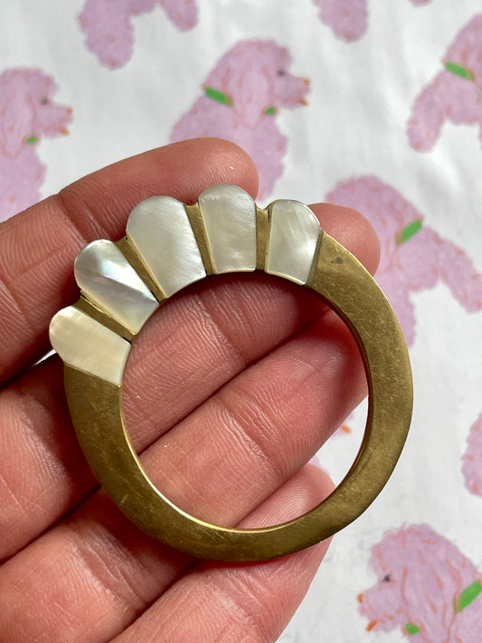 Vintage ronde broche met parelmoer