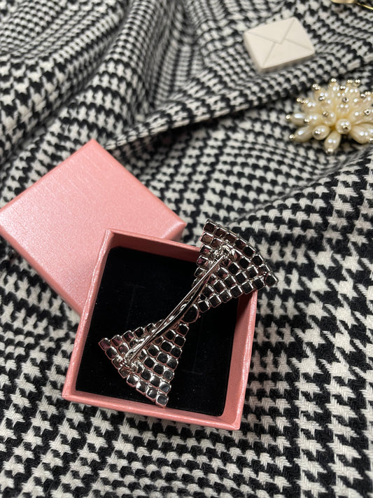 Vintage strik broche met strass