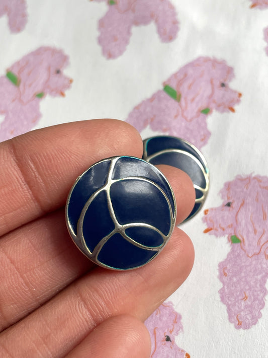 Vintage zilver & navy clip-on oorbellen