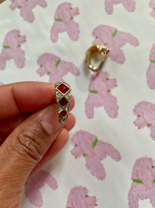 Vintage gouden creolen met robijn en strass