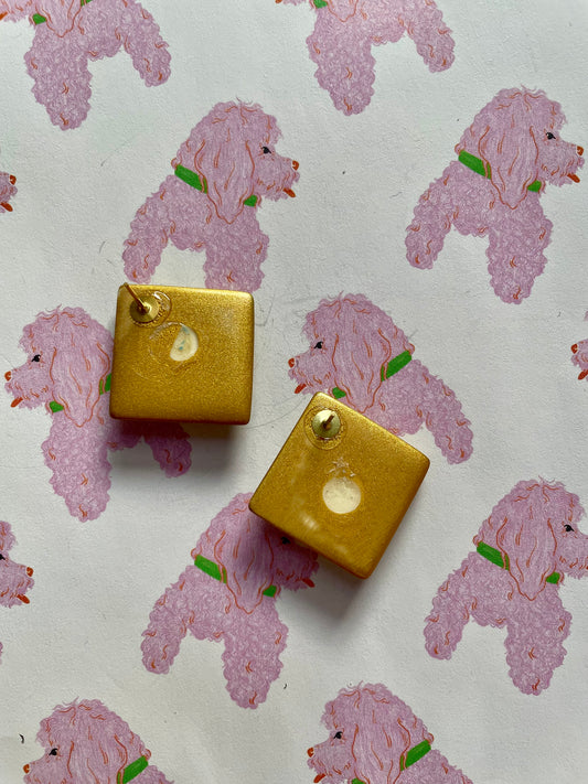 Vintage gold & red marble oorbellen