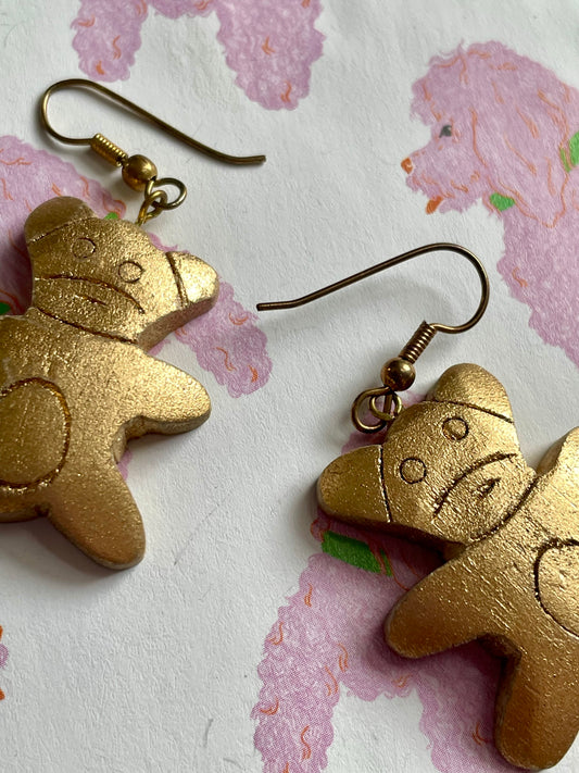 Houten 90's beren oorbellen