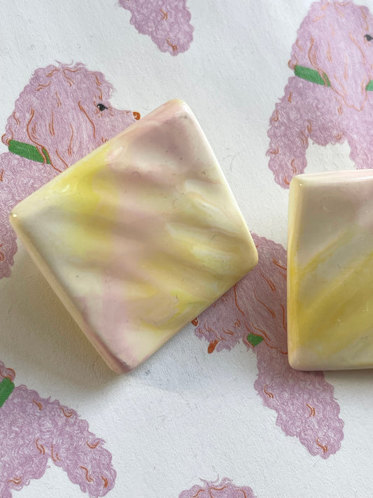 Vierkante ombre oorbellen geel-roze