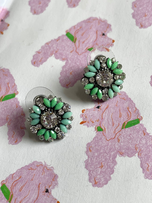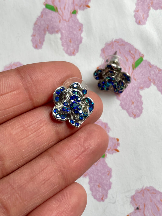 Donkerblauwe strass bloemen oorbellen