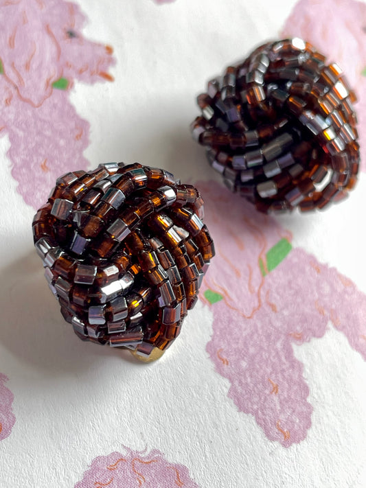 Bruine beaded clip-oorbellen