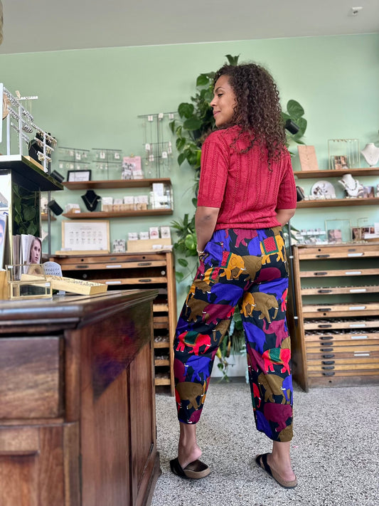 Niet beschikbaarVintage katoenen broek met olifantjes - M-L