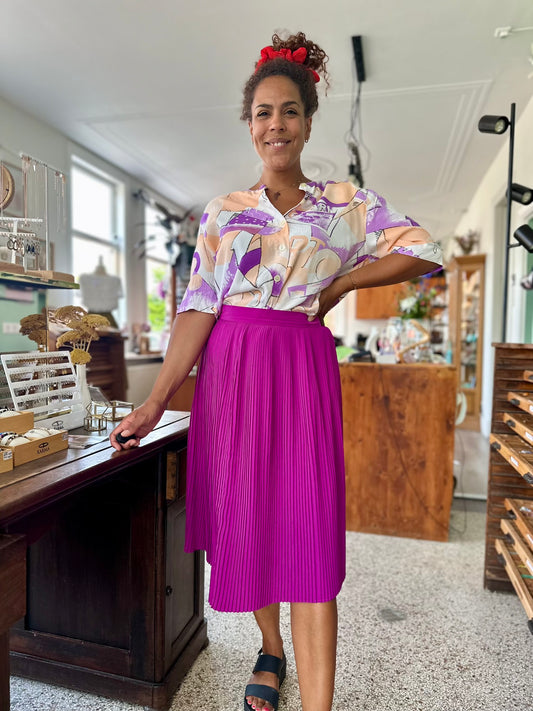 Met een vintage blouse met korte mouwen kun je alle kanten op. Of je nu kiest voor katoen, viscose of polyester, je draagt iets dat niemand anders heeft. Draagbaar, maar met een eigen draai.