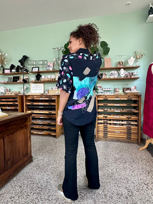 Elke blouse met korte mouwen in deze collectie vertelt een eigen verhaal. Van crazy prints tot verfijnde borduursels: deze vintage parels laten zien dat een blouse allesbehalve saai hoeft te zijn. Perfect voor iedereen die uitgesproken durft te dragen.