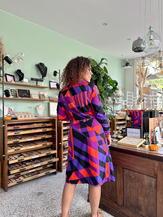 Er zijn vintage jurken in alle soorten, maten en stijlen. Maar bij The Comeback Store vind je vooral kleurrijke vintage jurken en jurken met een uitgesproken print. Denk aan retro bloemenprints, wilde eighties-patronen of grafische ontwerpen uit de jaren 70 of 90. Vaak heb je aan zo’n jurk niet veel meer nodig: je jurk maakt je outfit.