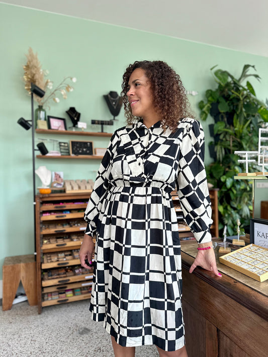 Niet beschikbaarVintage grafische zwart-wit jurk - M