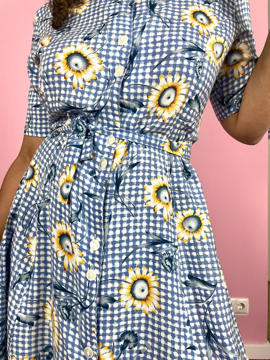 Niet beschikbaarVintage viscose klokjurk met bloemen M-L