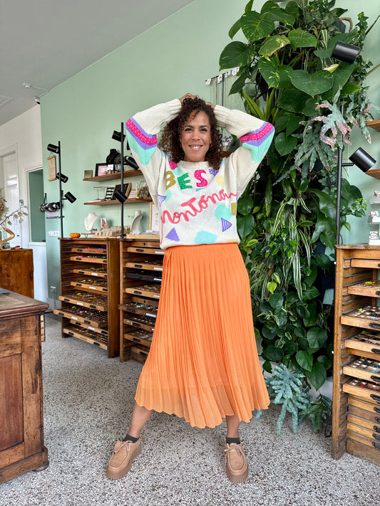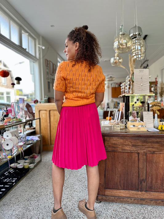 Niet beschikbaarVintage oranje plooirok van mesh
