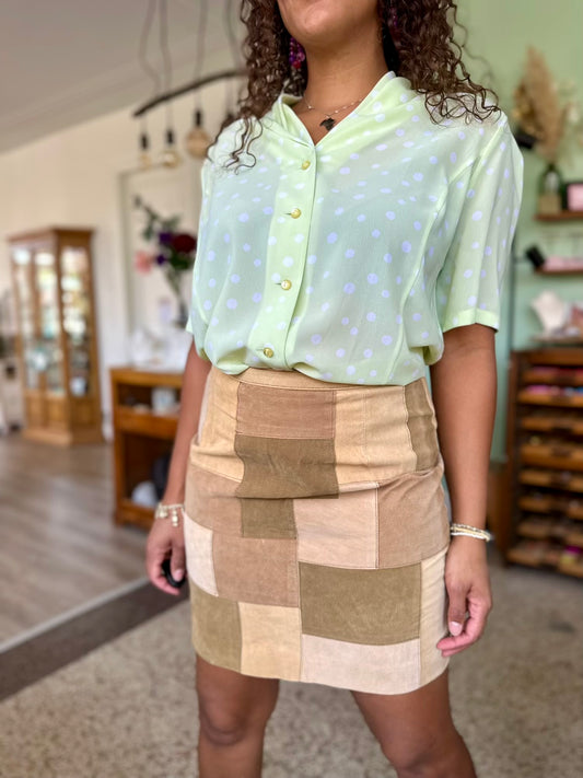 Niet beschikbaarVintage suède minirok in patchwork patroon S
