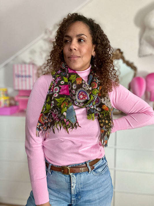 Daarnaast geven ze je outfit in één beweging karakter. Of je nu een rustige basis draagt of juist van kleur houdt — een vintage sjaaltje maakt het af, zonder moeite.
