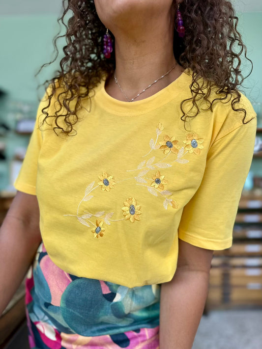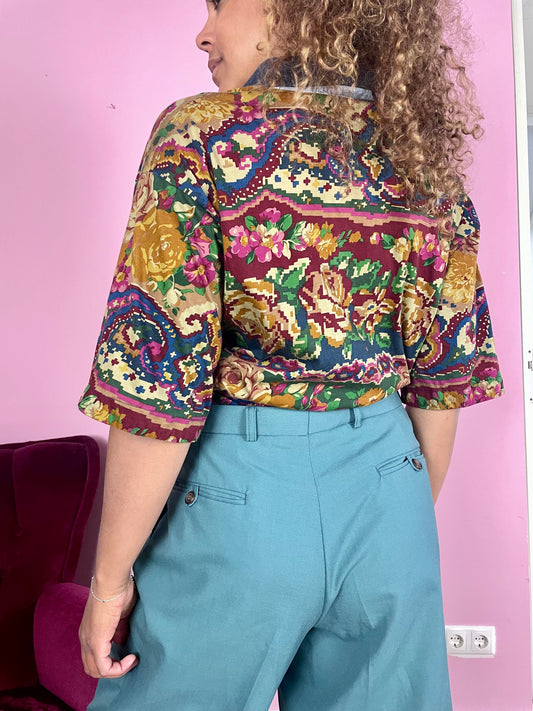Niet beschikbaarVintage t-shirt met geborduurde margrietjes M-L