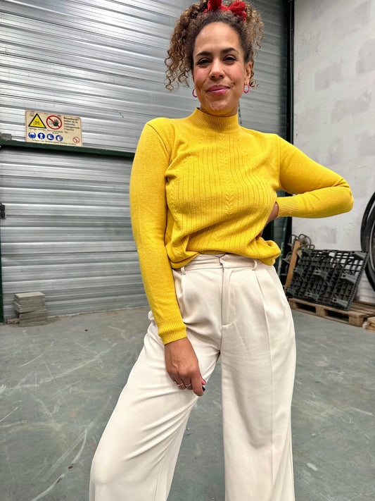 Niet beschikbaarVintage oker coltruitje van merinowol-mix - M