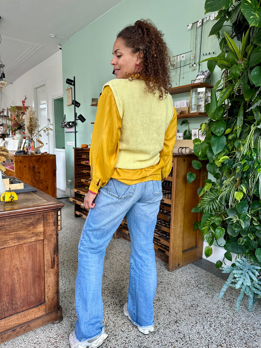Niet beschikbaarVintage gebreide spencer in pastel geel