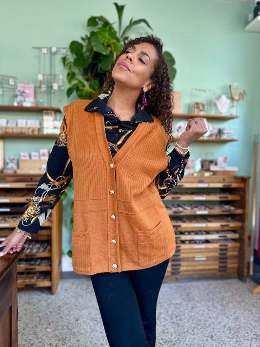 Niet beschikbaarVintage camel knitted waistcoat - XL-XXL