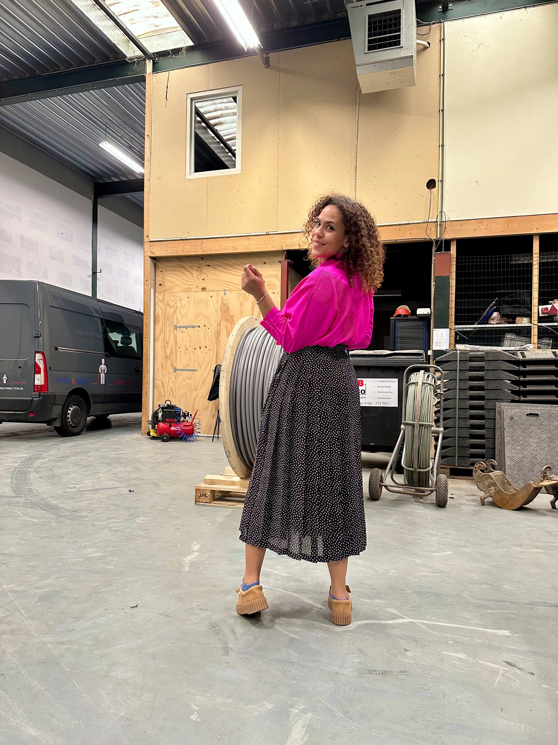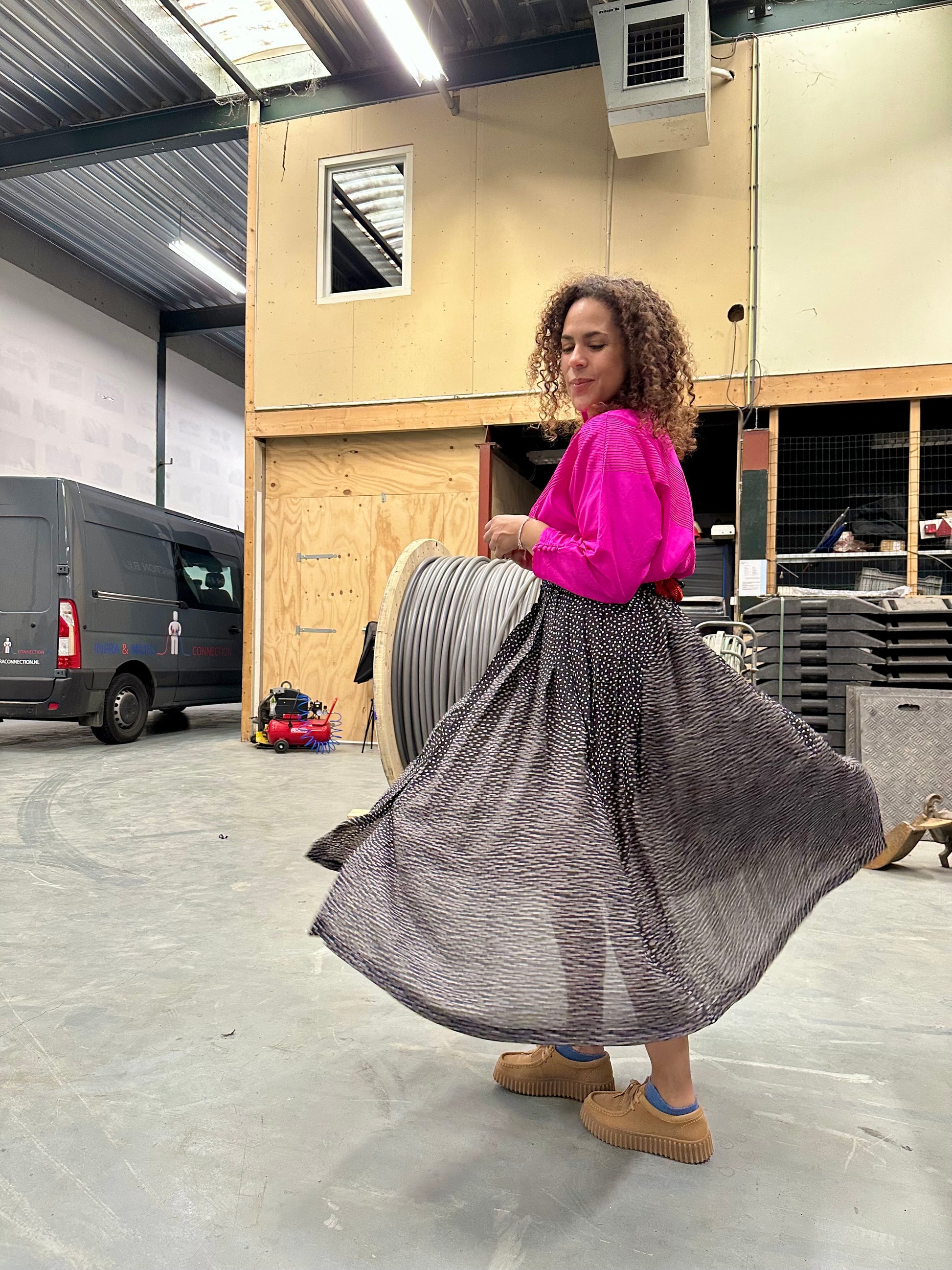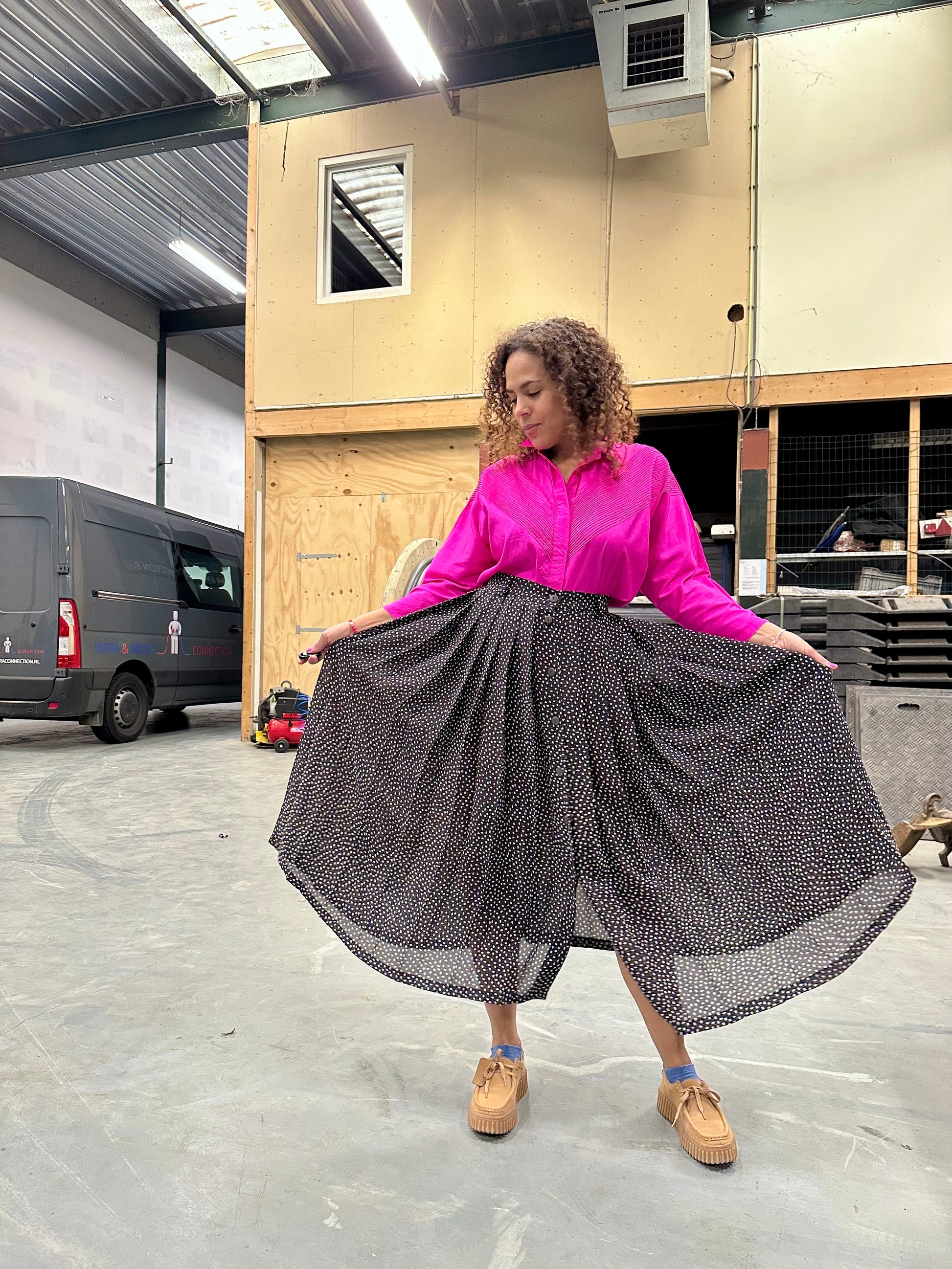 • Maat: confectiemaat 44, mogelijk ook met 42. de rok heeft lusjes voor een riem
