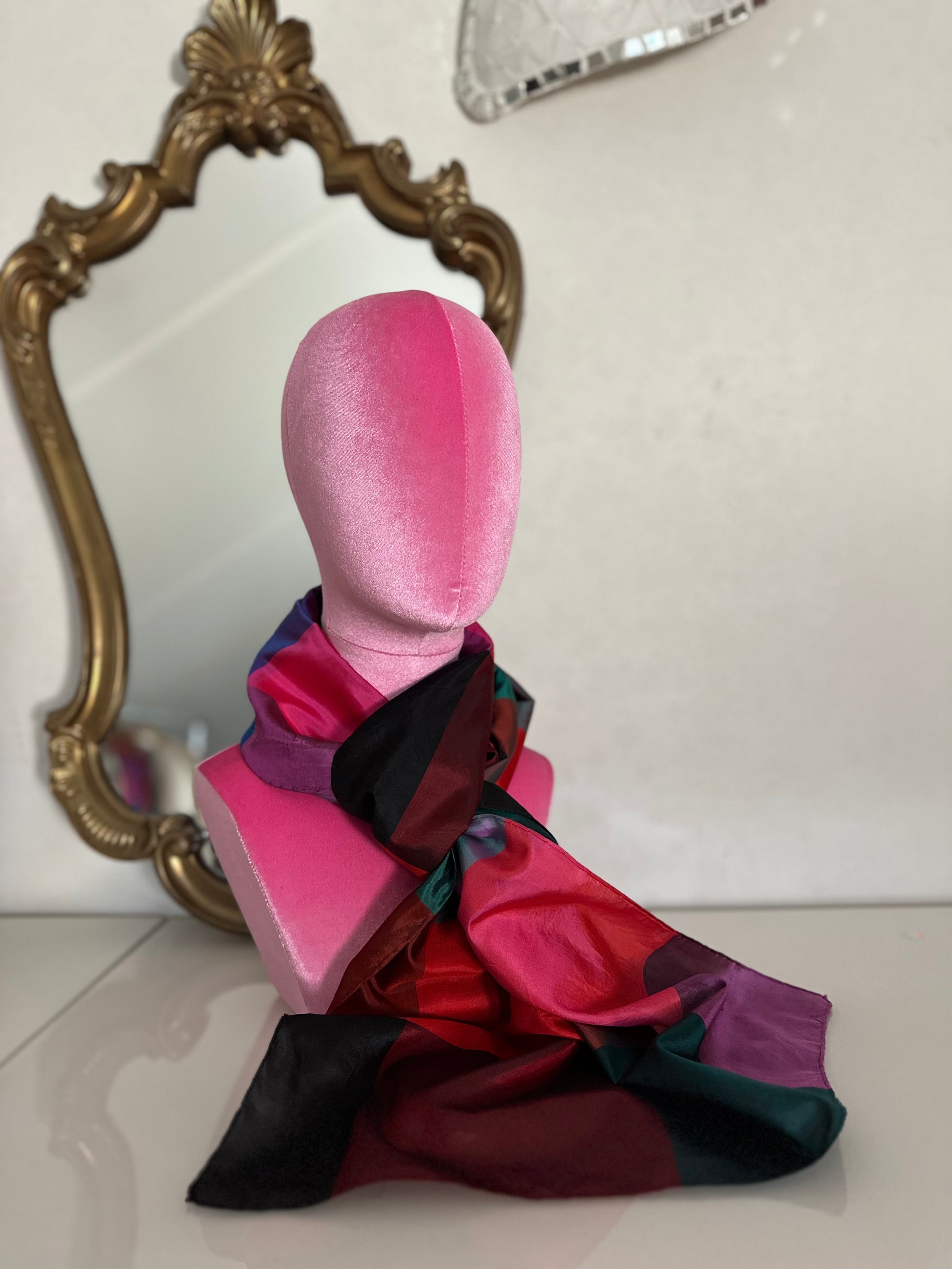 Prachtig rechthoekig sjaaltje in zijde. Soepelvallend, elegant en vrouwelijk. Te dragen rondom je hals of in je haar.