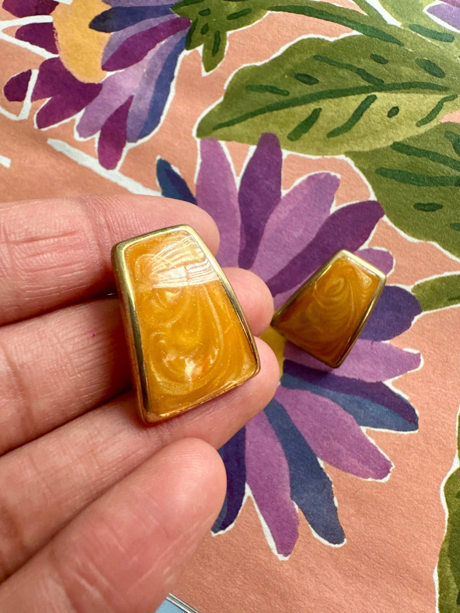 Mooie zware kwaliteit clip-oorbellen in de vorm van een kelk. Goudkleurig mrt okergele binnenzijde.