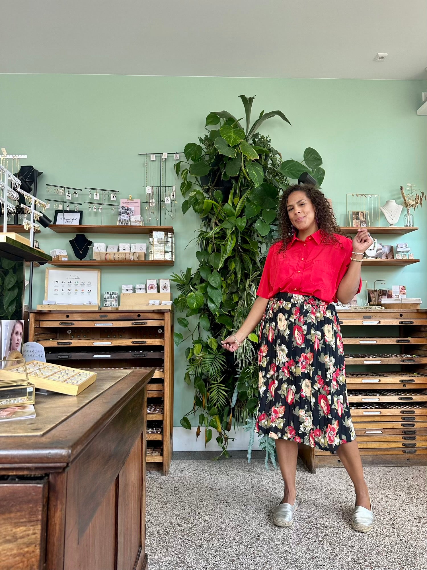 Een nette vintage plooirok die altijd goed is. Met bloemenprint in rustige basiskleuren en een zwierige lengte. Tijdloos en makkelijk te stylen voor werk of vrije tijd.
