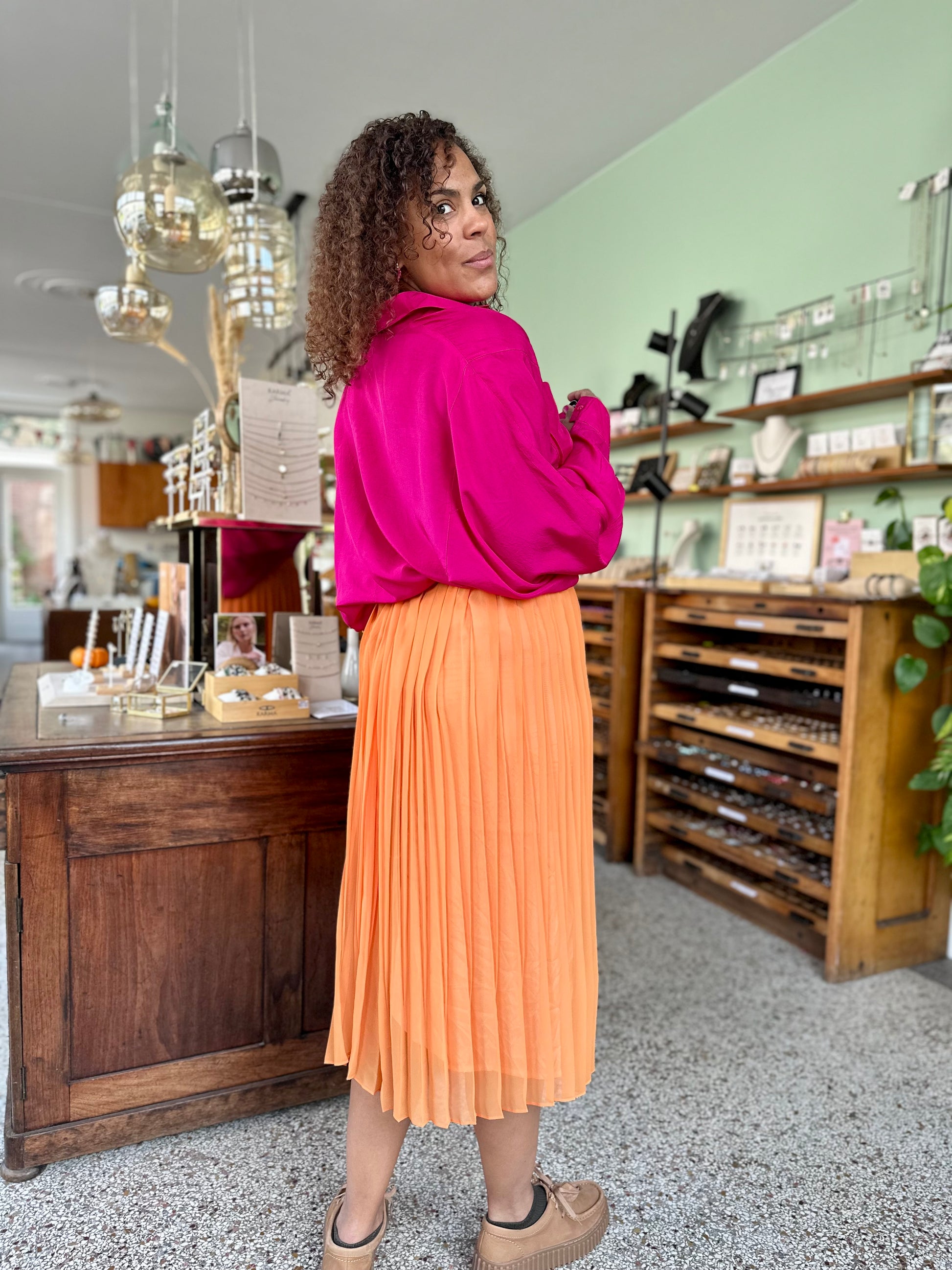 Durf jij deze knaloranje plooirok aan en alle blikken op je te trekken?