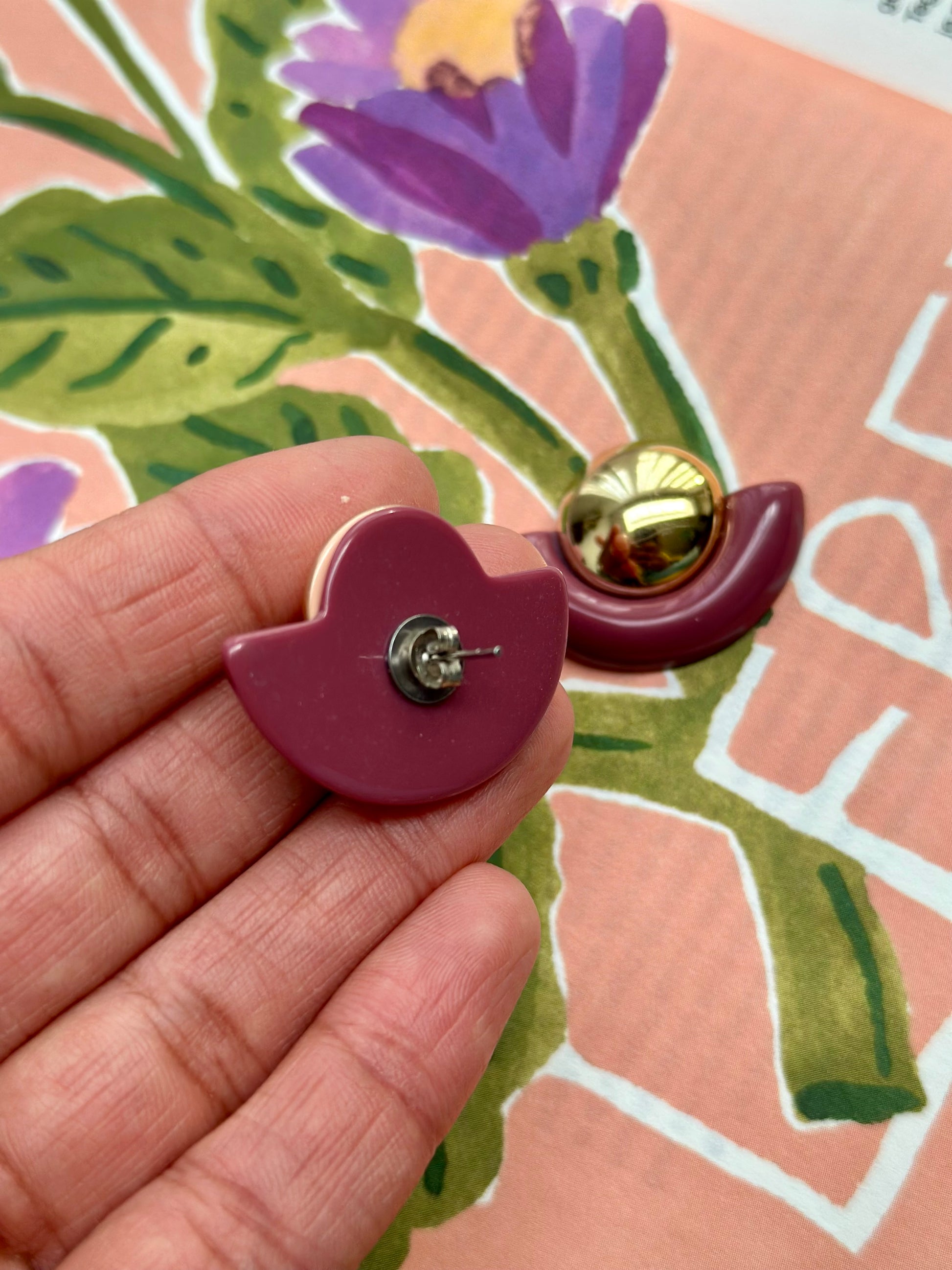 Vintage oudroze halve maan oorbellen