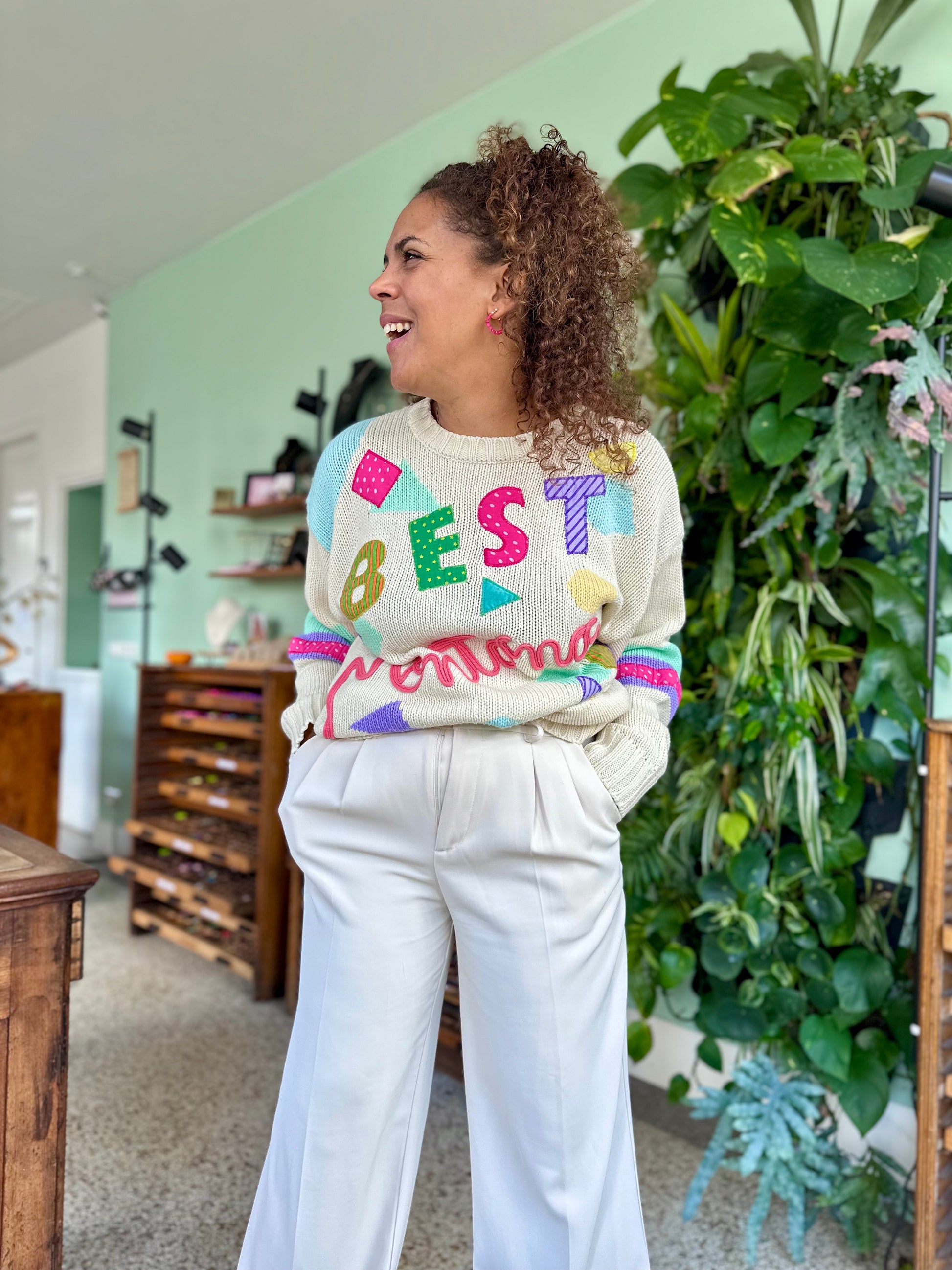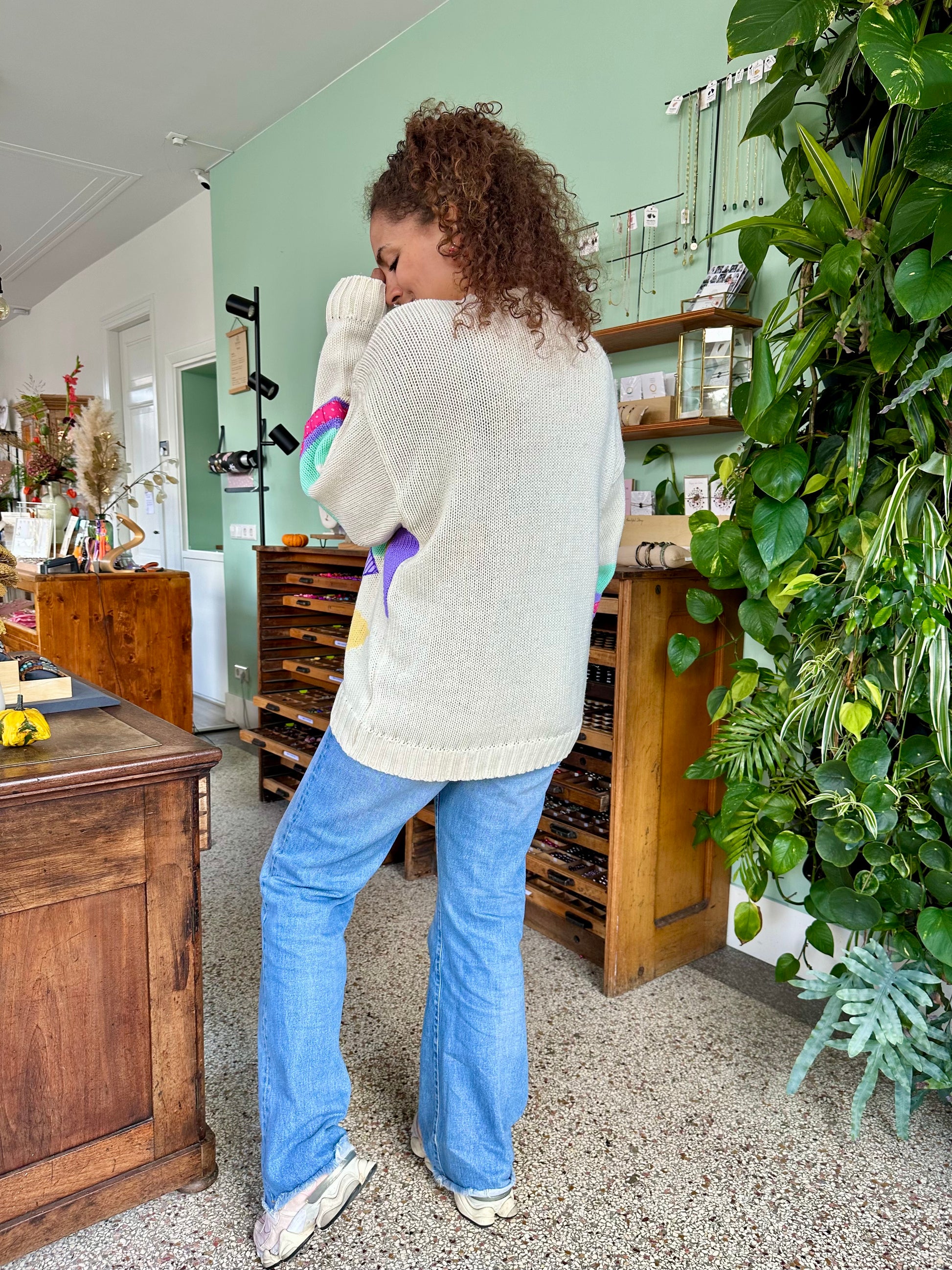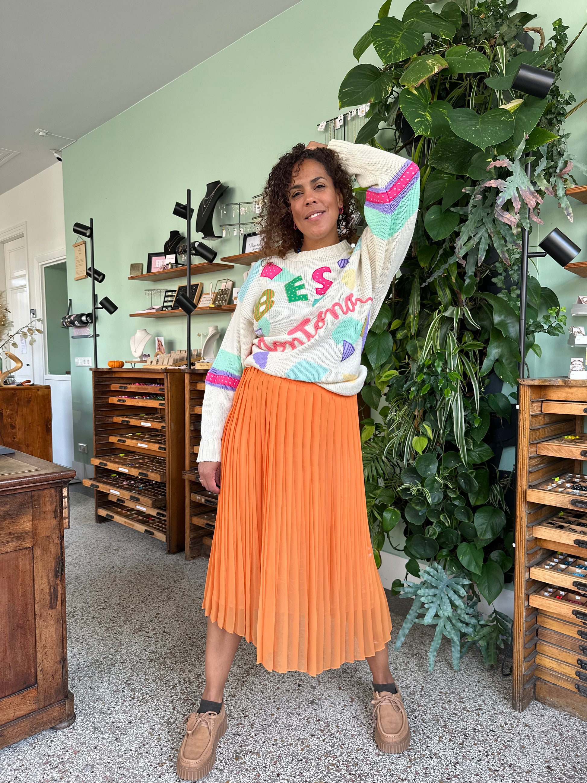 Stylingtip: Combineer met een effen broek of rok zodat de print écht tot z’n recht komt. Een knalkleur in 1 van de kleuren in de trui, maakt vanzelfsprekend ook een geweldige combinatie!
